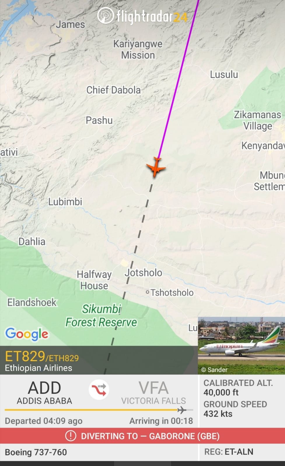 Zimlive On Twitter No Landing Ethiopian Airlines Flight Eth829 Was Due To Land In Victoria Falls But Flight Tracking Service Flightradar24 Says It Has Diverted To Gaborone Botswana It S Now In Botswana